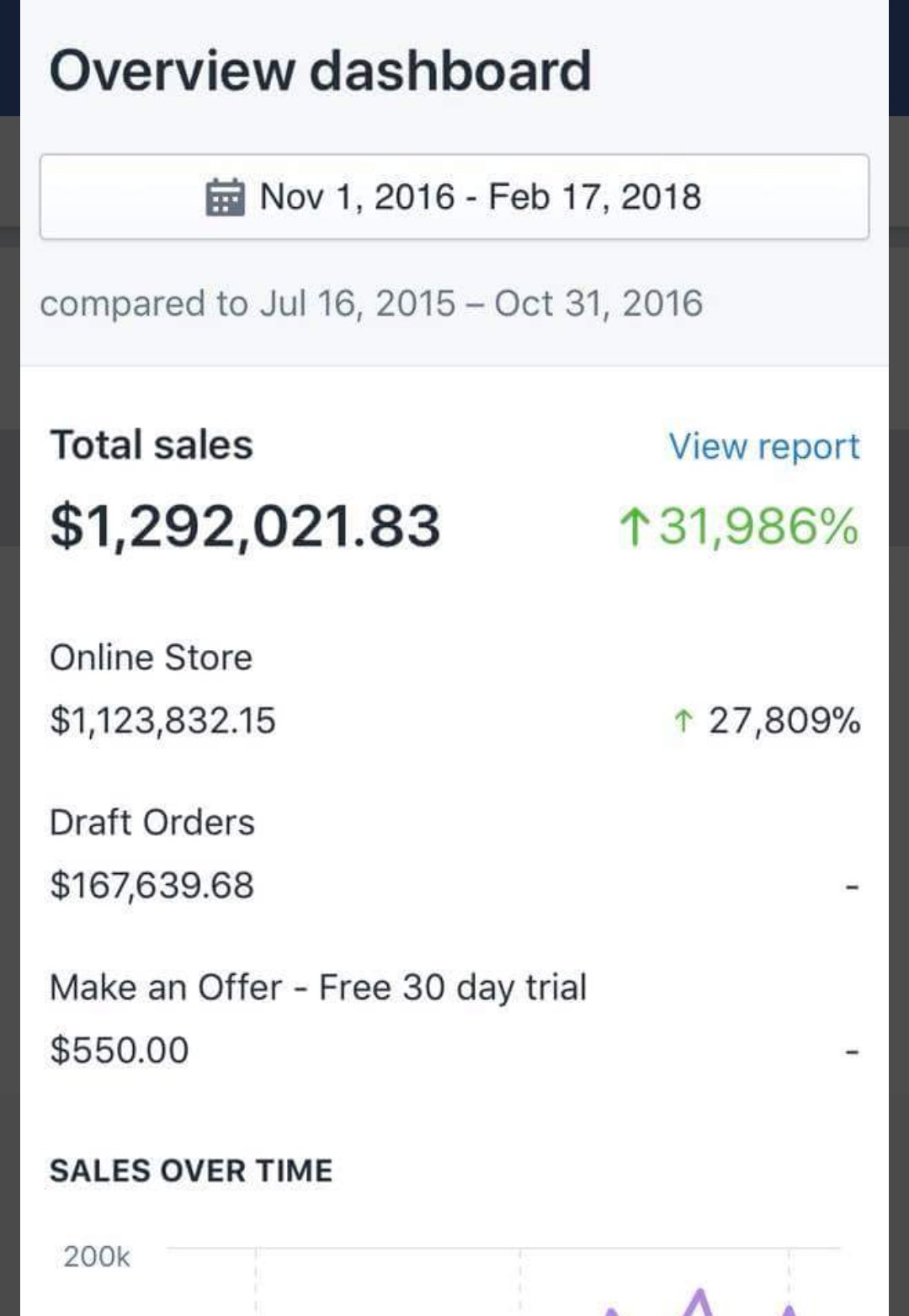 在开始正式话题之前,给大家看一个dashboard, 这是我一个美国同行的朋友发给我的最新的销售统计表,他这个店铺也就一年多一点的时间,全部是DS模式,产品是Auto Parts, 他现在有4个这样的店铺在运作,就他一个人在操作。但是,当然了,他有请5个VA帮他打理。