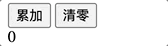 在界面中添加两个按钮,在点击操作时一个进行累加,另一个做清除将值重置为0,实时的结果显示在一个 div 中,普通HTML 的实现方式为: