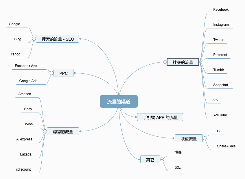 平台类流量,最近几年风声水起,比如亚马逊、ebay、速卖通、Wish 等,同时国外独立站占据很大的市场 - 联盟流量